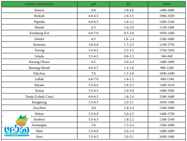 Tabel Ppm Dan Ph Yang Diperlukan Untuk Hidroponik