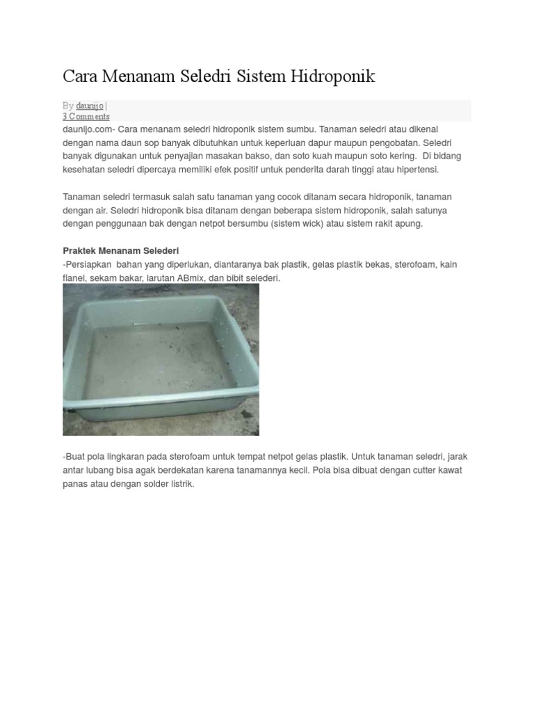 Cara Menanam Seledri Sistem Hidroponik Docx