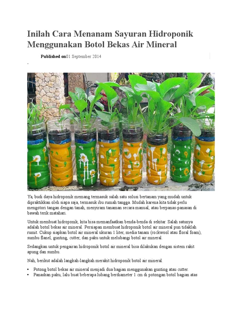 Cara Membuat Hidroponik Sederhana Dari Botol Mineral Bekas Cocok