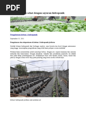 Analisis Usaha Sayuran Hidroponik Pada Pt Kebun Hidroponik