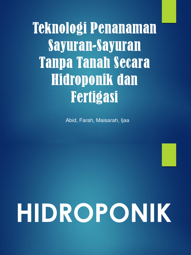 Ramdan febri 134542 views. Fertigasi adalah teknik aplikasi unsur hara melalui sistem irigasi. Penanaman secara hidroponik adalah mudah dan ianya adalah permulaan yang sesuai bagi mereka ingin mula berkebun. Dengan teknik fertigasi biaya tenaga kerja untuk pemupukan dapat dikurangi karena pupuk diberikan bersamaan.