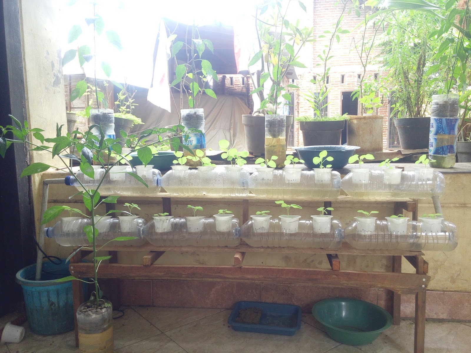 Kebun Hidroponik Sistem Sumbu Memakai Botol Plastik Urban Hidroponik