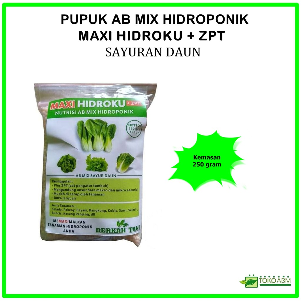 Pupuk Ab Mix Hidroponik Sayuran Daun Maxi Hidroku Zpt Kemasan