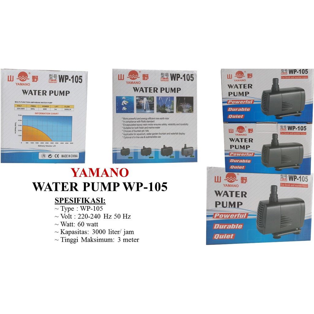 Wp 3800 Yamano Pompa Air Aquarium Besar Kolam Koi Hidroponik
