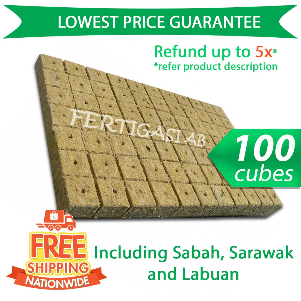 Grade A 100 Cubes Rockwool 3cmx3cmx4xm Seedling Semai Benih