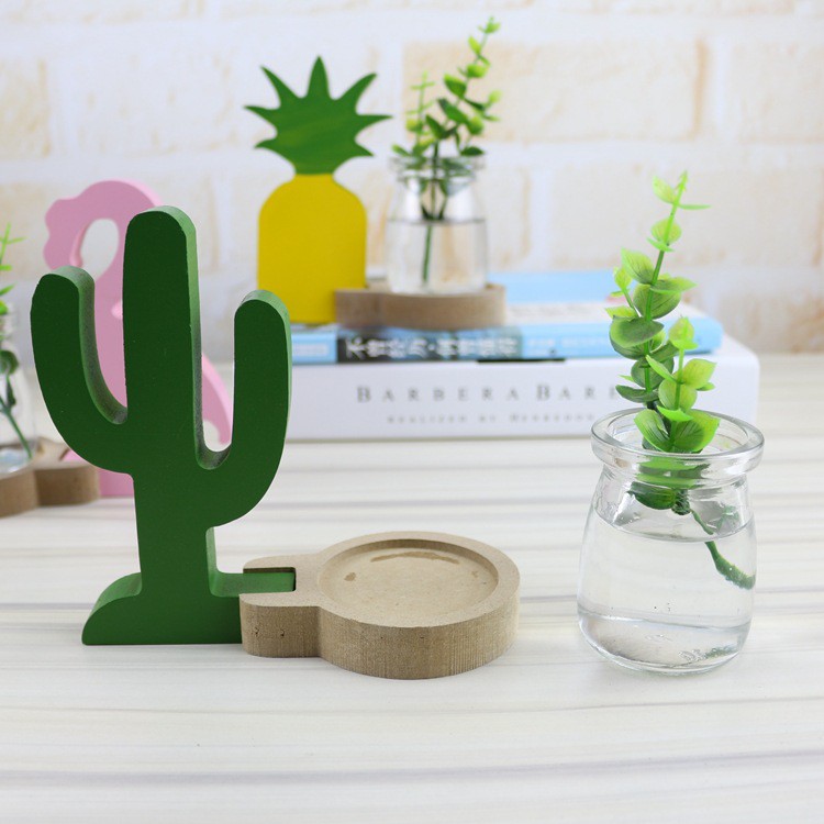 Hidroponik Vas Kaca Kreatif Flamingo Nanas Kaktus Desktop Kayu