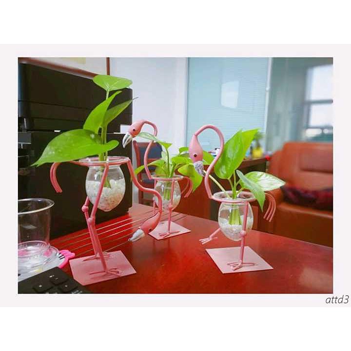 Vas Bunga Hidroponik Bentuk Burung Flamingo Bahan Besi Kaca