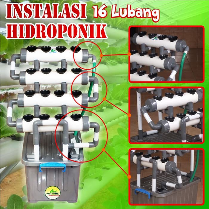 Instalasi Hidroponik Mini Murah 16 Lubang Gratis Netpot 16 Pcs