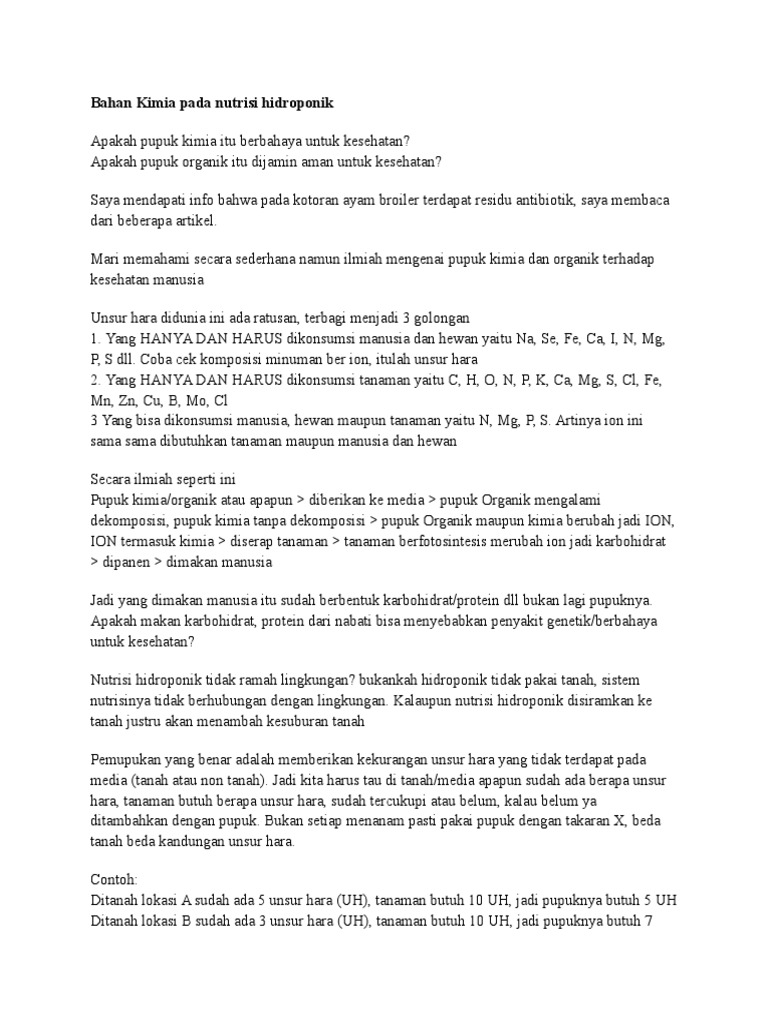 Cara Membuat Nutrisi Hidroponik Buatan Sendiri Docx