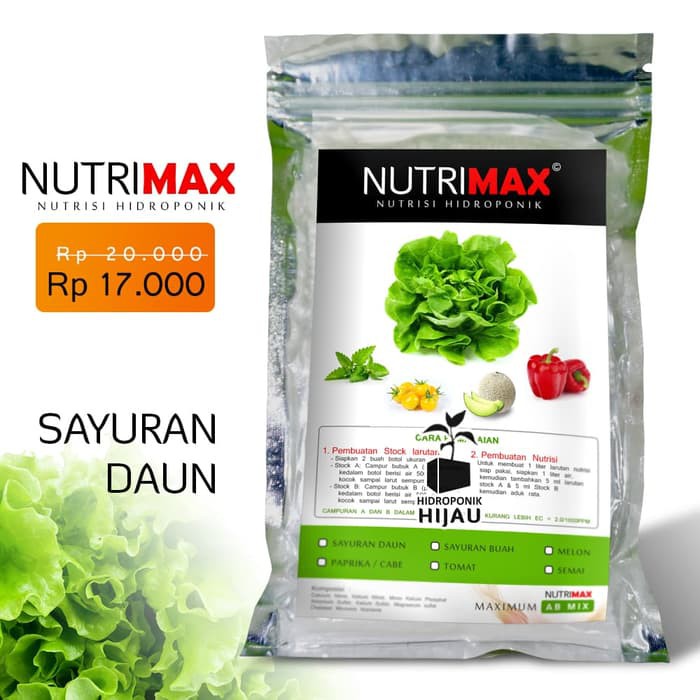 Nutrisi Hidroponik Maximum Ab Mix Nutrimax Sayuran Daun Sd Pupuk
