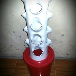 Dengan tempat saya menanam yang tinggi nya tidak sampai 2 meter saya putuskan untuk membuat pipa vertikal kultur dengan tinggi 1 meter saja. Karena bertingkat empat dan setiap sisinya masing masing berisi 8 tanaman maka pada luasan yang sama total populasi 64 tanaman. Pada dft meski air dalam kondisi mengalir masih sering juga dijumpai jentik jentik nyamuk yang dapat hidup di aliran hingga perlu mendapat perhatian. Sesuai namanya bentuk nya serupa dengan tower yang tinggi tanaman ditanam di netpot yang dimasukkan di lubang yang dibuat di sekeliling pipa berbentuk tower tersebut.