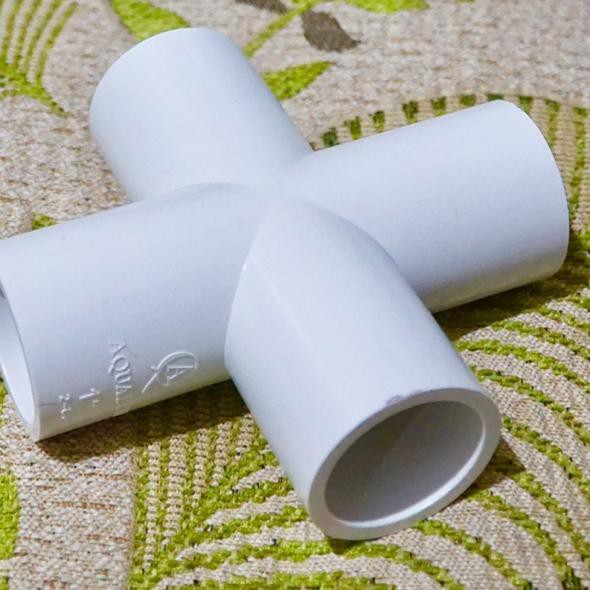 0k Sambungan Khusus 4 Way Tee Cross Pipa Pvc 1 Inch Putih Utk Rak