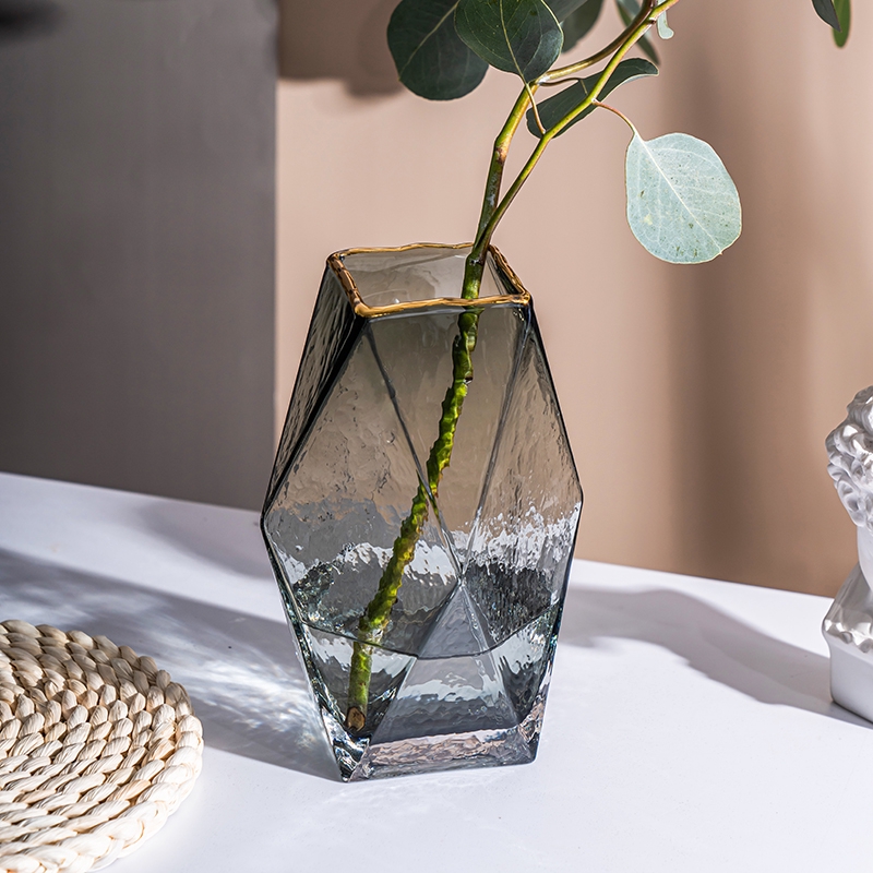 Nordic Emas Mewah Cahaya Sederhana Kaca Geometris Vas Transparan