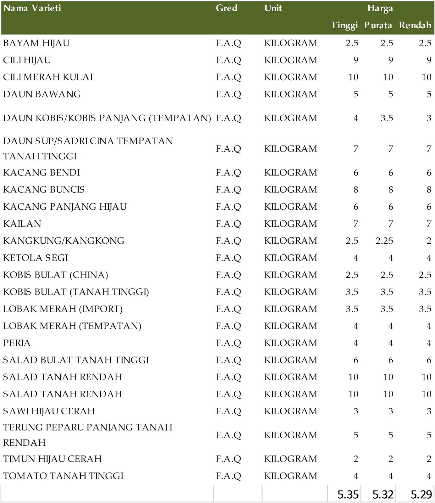 Daftar Harga Terbaru Tanaman Sayuran Yang Di Tanam Pada Sistem