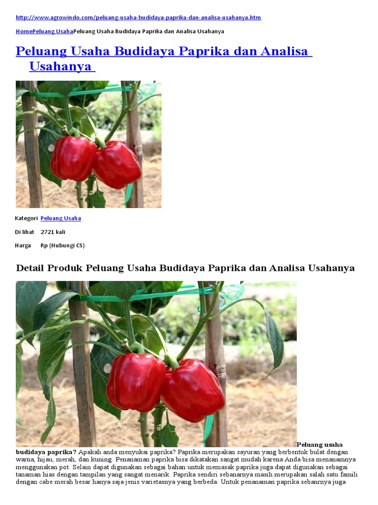Peluang Usaha Budidaya Paprika Dan Analisa Usahanya Agrowindo