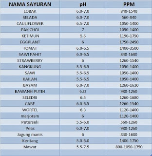 Tabel Ppm Dan Ph Yang Diperlukan Untuk Hidroponik