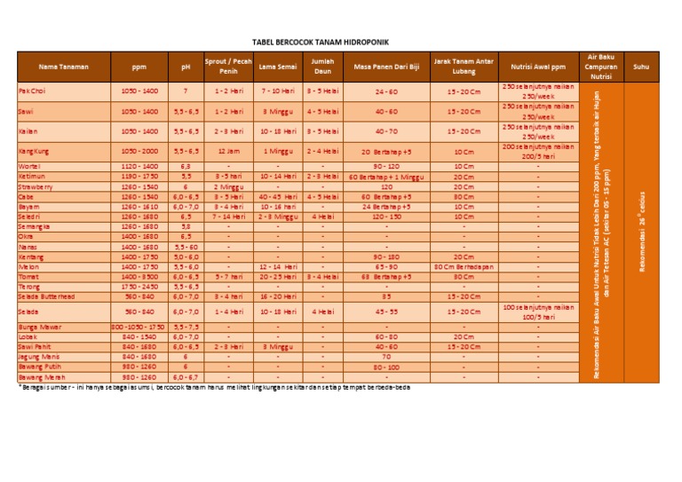 Tabel Ppm Dan Ph Untuk Tanaman Hidroponik Facebook