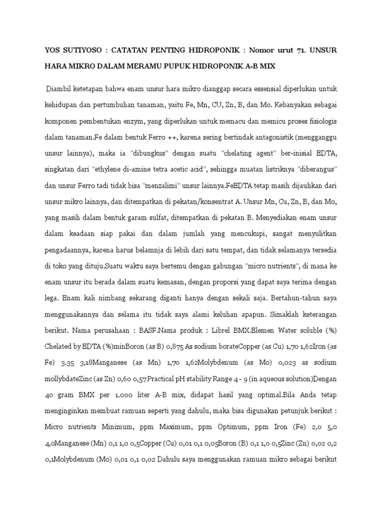 Doc Yos Sutiyoso Catatan Penting Hidroponik Nomor Urut 71